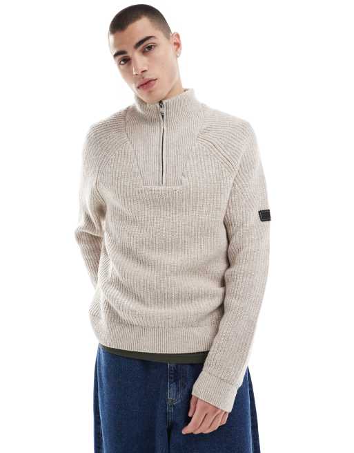 Barbour International – Chester – Strickpullover in Creme mit Trichterausschnitt
