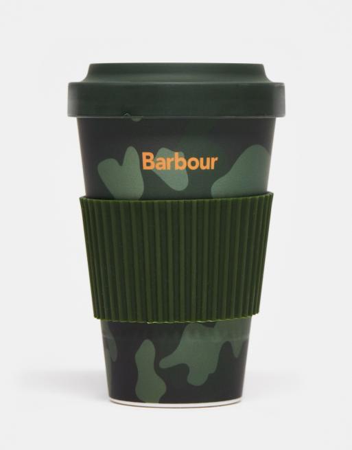 Barbour x ASOS – Exklusiver, wiederverwendbarer Reisebecher in Grün mit Military-Muster