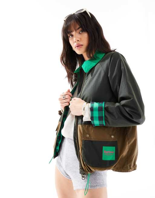 Barbour x ASOS – Hayley – Gewachste Jacke in Tannengrün mit Patchwork-Design