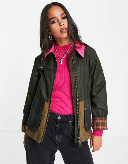 Barbour x ASOS – Lorna – Exklusive, gewachste Jacke in Archive-Olivgrün mit Patchwork-Deisgn