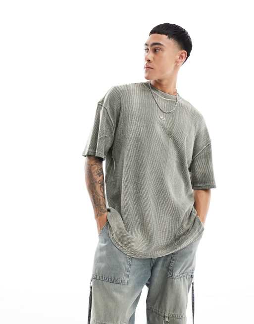 Basic Pleasure Mode – T-Shirt in grauer Acid-Waschung mit Waffelstruktur