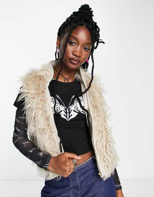 Basic Pleasure Mode – Yeti – Weste aus Kunstfell in Beige