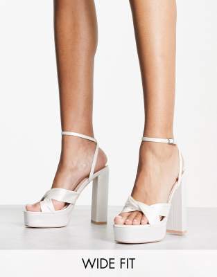 Be Mine Wide Fit – Margot – Satin-Sandaletten in Elfenbein mit Plateausohle