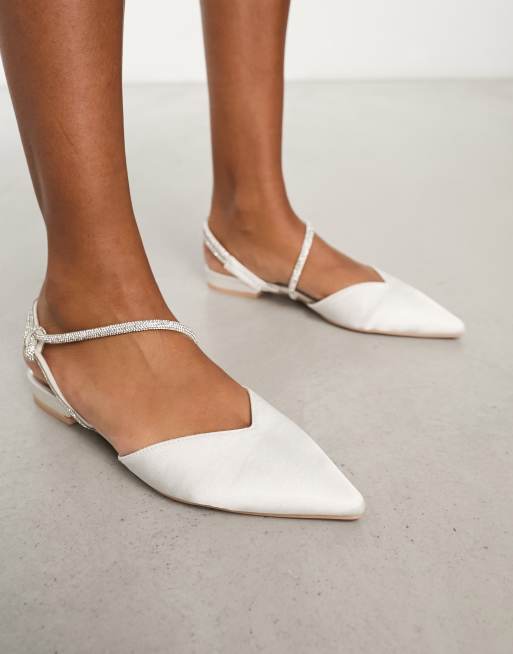 Be Mine – Bridal – Keena – Verzierte, flache Schuhe in Elfenbeinweiß