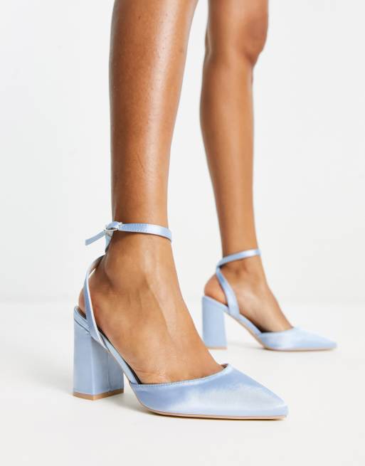 Be Mine – Neima – Schuhe aus Satin in Blassblau mit Blockabsatz
