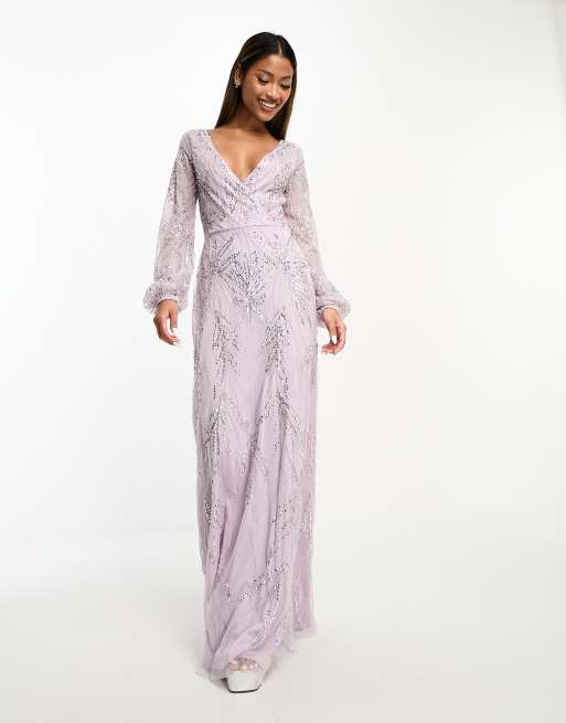 Beauut – Bridesmaid – Verziertes Maxikleid in Flieder mit Wickel-Design