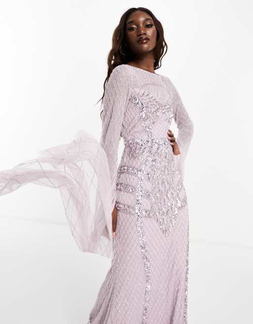 Beauut – Verziertes Maxikleid in Flieder mit übergroßen Ärmeln