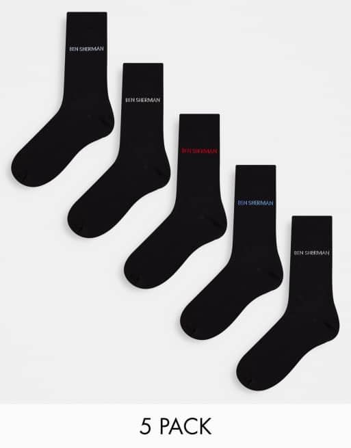 Ben Sherman – 5er-Pack Socken in Schwarz mit kariertem Detail