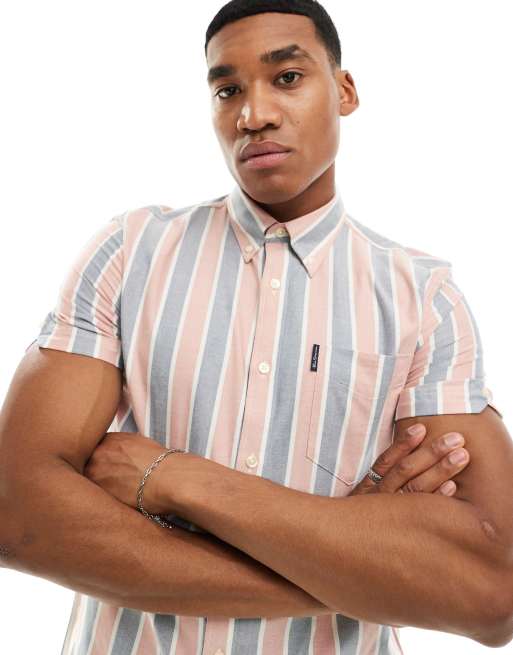 Ben Sherman – Kurzärmliges Oxford-Hemd in Hellrosa mit Streifen