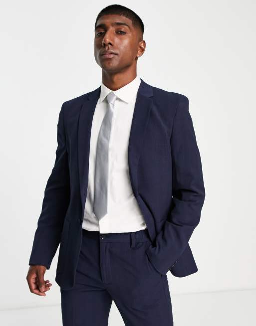 Ben Sherman – Sehr locker geschnittene Anzugjacke aus Seersucker in Marineblau