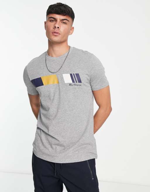 Ben Sherman – T-Shirt in Grau mit Retro-Streifenprint