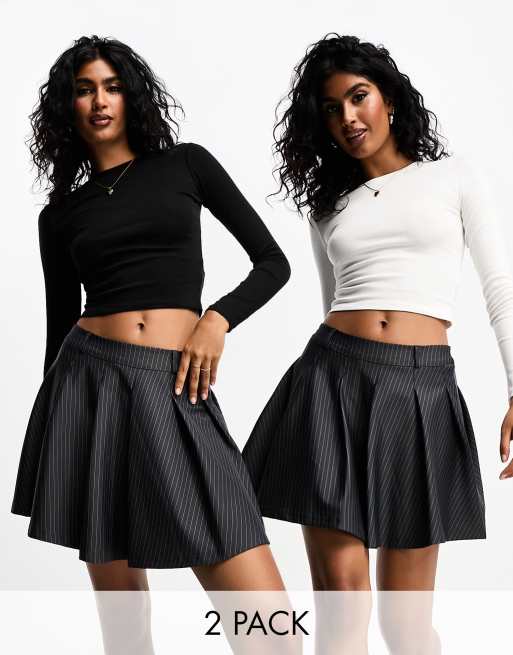 Bershka – 2er-Pack Knapp geschnittene, langärmlige T-Shirts in Schwarz und Weiß