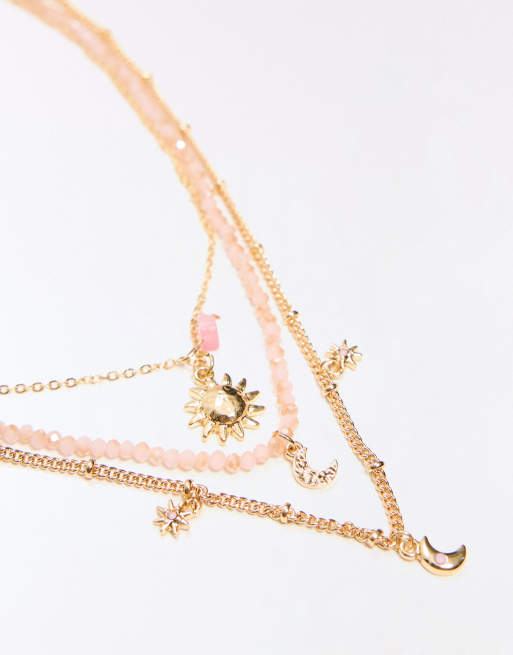 Bershka – 3er-Pack Perlenhalsketten in Goldoptik