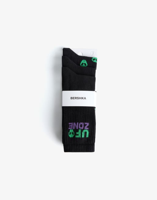 Bershka – 3er-Pack Socken in Schwarz mit Muster