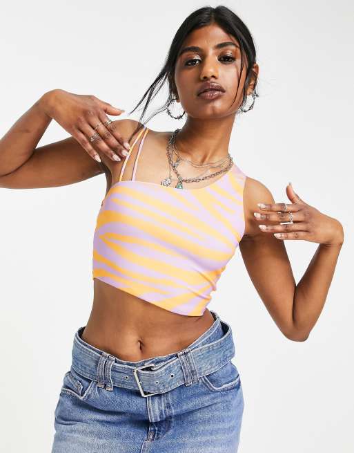 Bershka – Asymmetrisches Oberteil mit Zebramuster in Orange