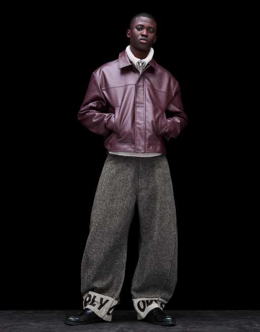 Bershka – Barrel-Hose in Grau und Schwarz mit bedrucktem Saum