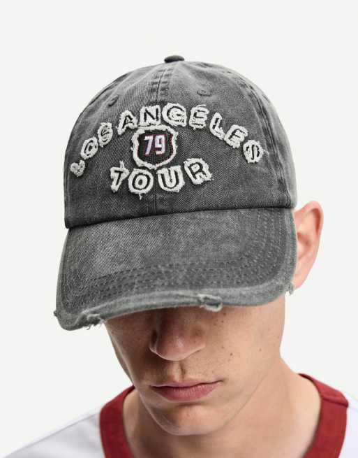 Bershka – Bestickte Kappe in Schwarz
