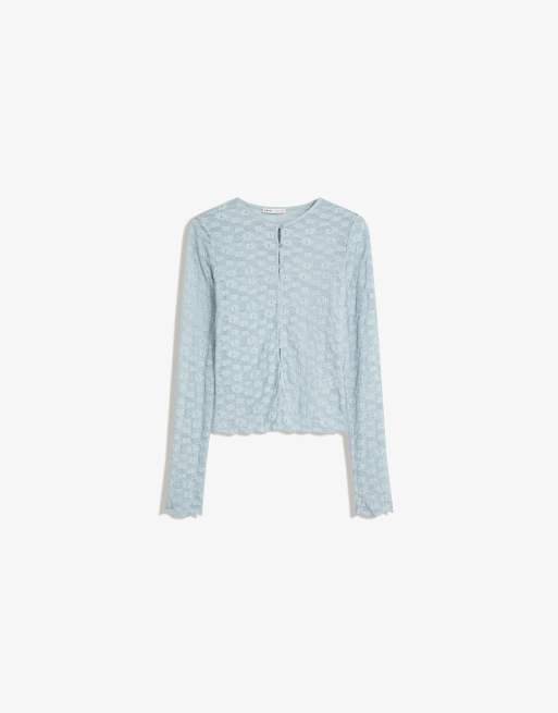 Bershka – Blonde – Strickjacke aus Spitze in Hellblau