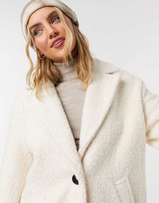 Bershka – Bouclé-Mantel in Ecru