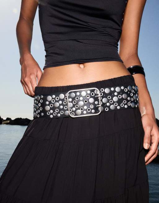 Bershka – Breiter Gürtel aus Kunstleder in Schwarz mit Nietenverzierung