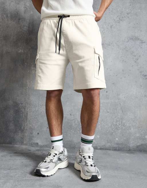 Bershka – Cargo-Bermudashorts in Weiß mit Regular-Fit-Schnitt