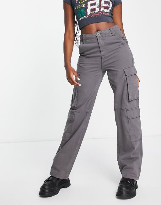 Bershka – Cargohose in Dunkelgrau mit Kordelzug-Taillenbund