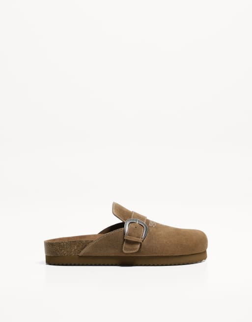 Bershka – Clogs in Hellbraun mit Schnallendetail