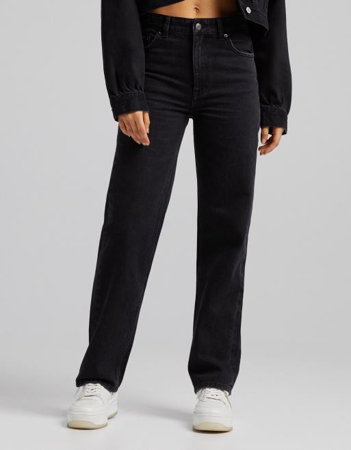 Bershka – Dad-Jeans in Schwarz mit hohem Bund