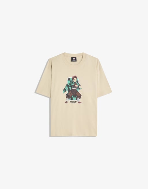 Bershka – Demon Slayer – Kurzärmliges T-Shirt in Camel