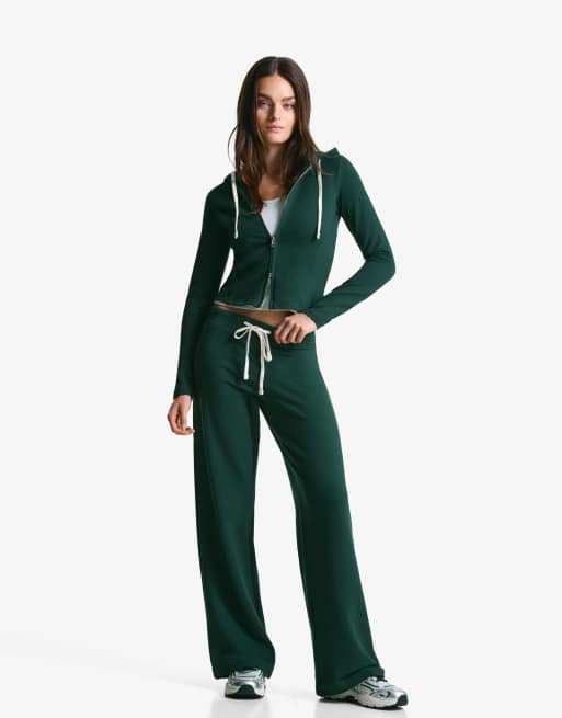 Bershka – Flauschige Hose aus Jersey in Grün