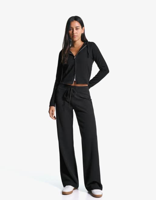 Bershka – Flauschige Hose aus Jersey in Schwarz