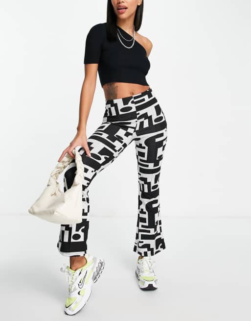 Bershka – Gerade geschnittene Hose mit Grafikmuster in Schwarz-Weiß