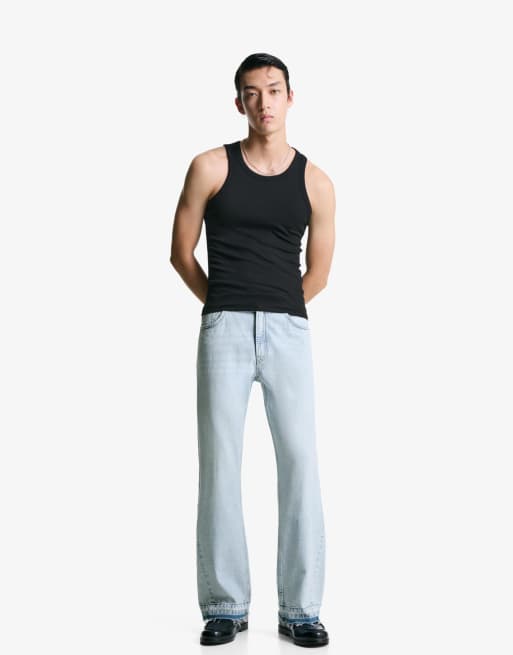 Bershka – Gerade Schlag-Jeans in Hellblau