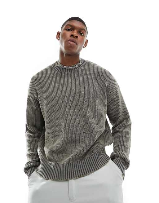 Bershka – Gerippter Pullover in verwaschenem Grau