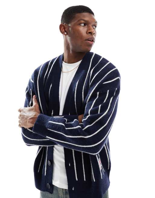 Bershka – Gestreifte Strickjacke in Marineblau