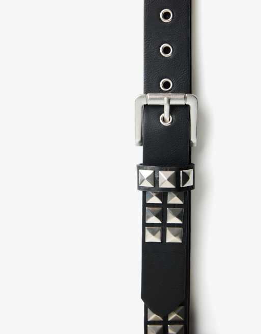 Bershka – Gürtel in Schwarz mit Lederoptik und Nieten