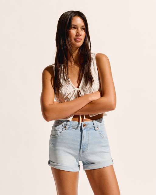 Bershka – Hellblaue Jeansshorts mit aufgerolltem Saum