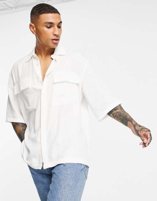 Bershka – Hemd in gebrochenem Weiß mit zwei Taschen