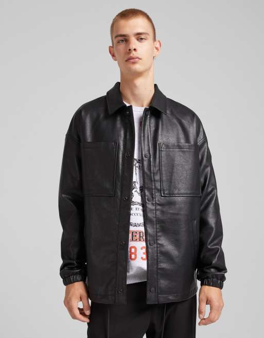 Bershka – Hemdjacke aus Kunstleder in Schwarz