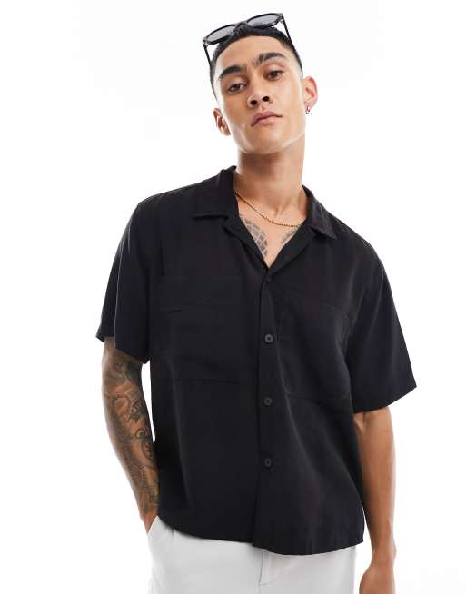 Bershka – Hochwertiges Hemd in Schwarz mit Tasche