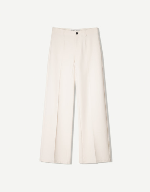 Bershka – Hose in Weiß mit weitem Bein