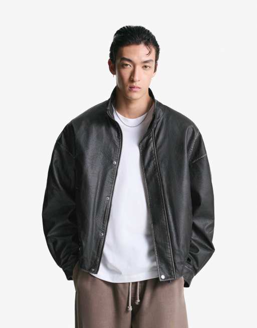 Bershka – Jacke aus Kunstleder in Schwarz