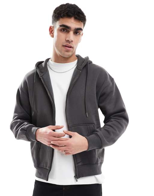 Bershka – Kapuzenjacke in Anthrazit mit Reißverschluss
