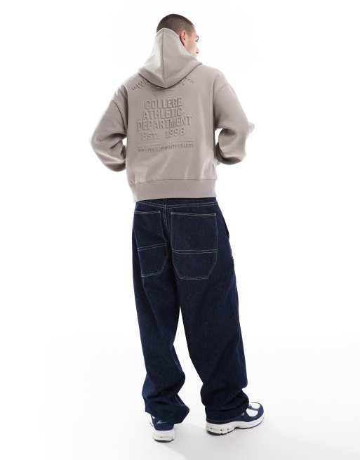 Bershka – Kapuzenpullover in Beige mit Prägeprint