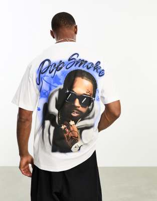 Bershka – Kastiges T-Shirt in Weiß mit „Pop Smoke“-Print