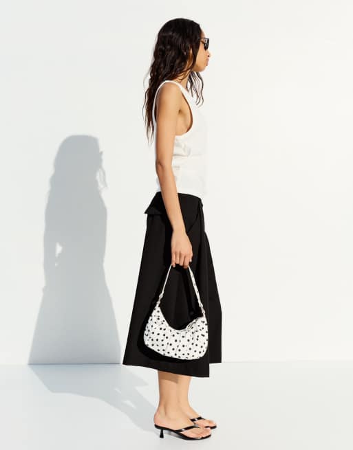 Bershka – Kleine Tasche in Weiß mit Polka Dots