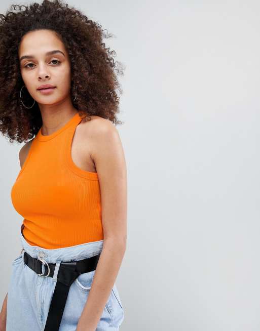 Bershka – Kurz geschnittenes, geripptes Oberteil in Orange