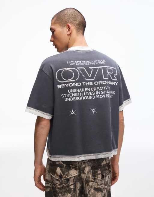 Bershka – Kurzärmliges T-Shirt in verwaschenem Grau mit Print