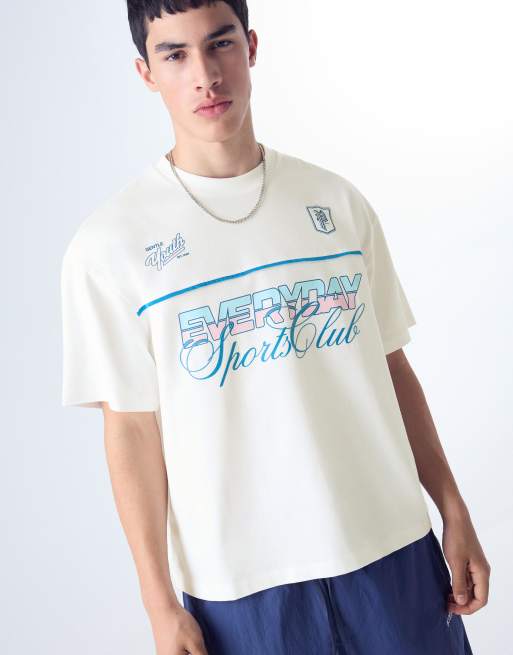 Bershka – Kurzärmliges T-Shirt in Weiß mit Print
