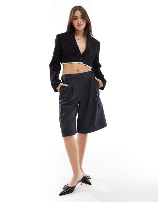 Bershka – Kurzer Blazer in Schwarz mit Hemd-Detail, Kombiteil